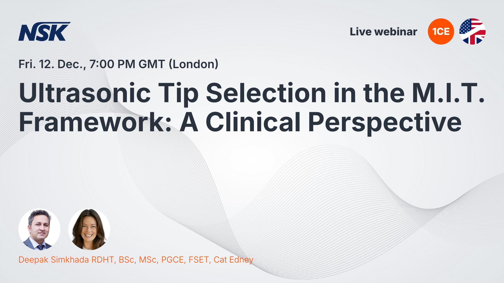 In this interactive session, Deepak Simkhada will guide clinicians through the process of selecting ultrasonic tips at each stage of the M.I.T.(Minimally Invasive Therapy) framework, aligned with S3 level clinical practice guidance for periodontal treatment. Using clinical scenarios, videos, and real patient cases, Deepak will demonstrate how to move from gross calculus removal to fine deposit management, ensuring both precision and patient comfort. Attendees will leave with practical, clinically relevant strategies to enhance their tip selection, integrate it into everyday practice, and elevate treatment outcomes.